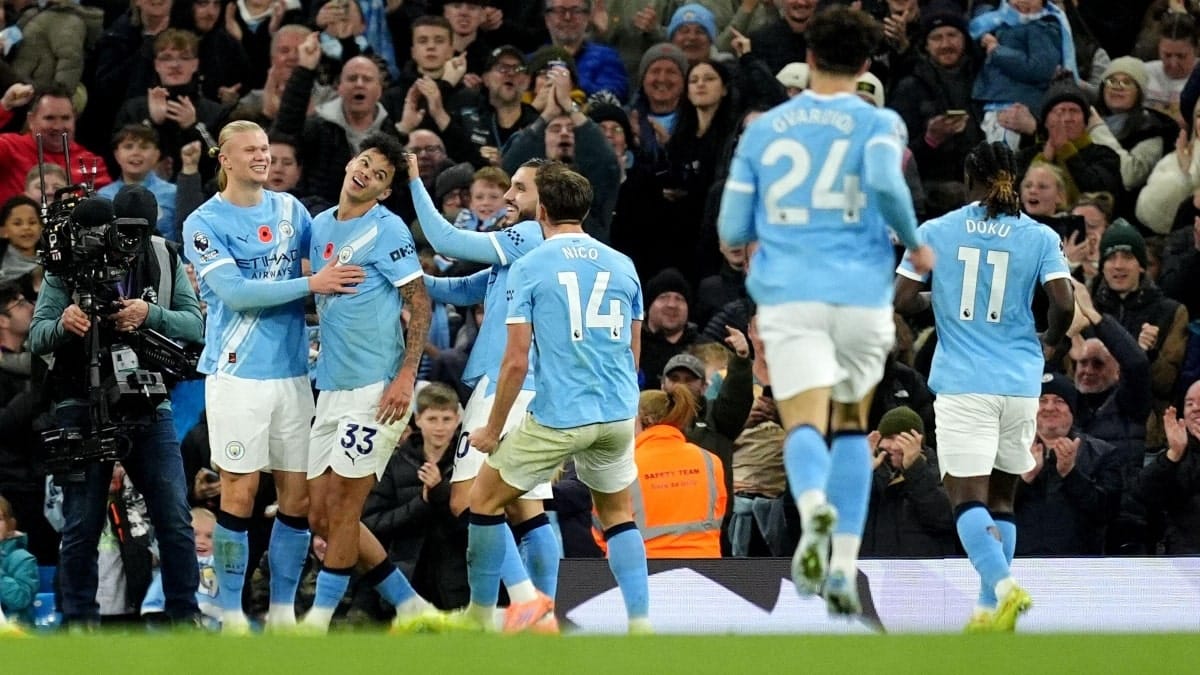 Manchester City starting lineup: Trafford, Nunes, Khusanov, Alleyne, Ake, Bernardo, O’Reilly, Semenyo, Foden, Doku, Haaland