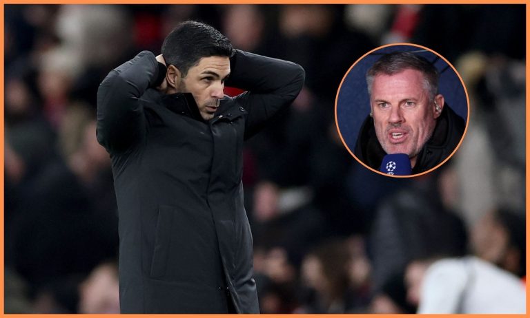 Mikel Arteta and Jamie Carragher (Photo by Justin Setterfield, Carl Recine/Getty Images)…