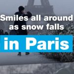 Smiles all around as snow falls in Paris